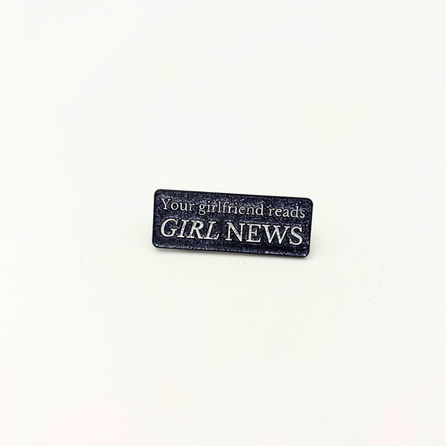 Everyone loves a cheeky little pin, don't they? Are you the girlfriend? Is this a gift for someone who has a girlfriend? Do you just want people with girlfriends on the street to wonder what Girl News is and why their gfs are reading it?? Have you come up with an entirely different meaning for this pin? No matter what, you'll love it. It's super sparkly, eye-catching, and PERFECT.